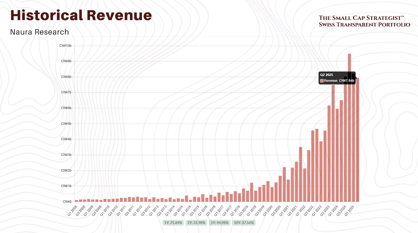 The chart says it all: NAURA Technology Group’s revenues have been compounding at breakneck speed, with Q2 2025 hitting CNY 7.94 billion, part of a 29.5% surge in H1 2025 sales to CNY 16.14 billion. Net profit followed suit, up 15% to CNY 3.21 billion.